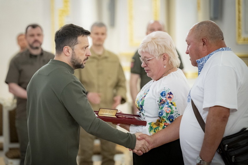 У День пам'яті захисників України, які загинули в боротьбі за незалежність, суверенітет і територіальну цілісність України, президент Володимир Зеленський зустрівся з рідними Героїв України та вручив 16 орденів «Золота Зірка» і 22 сертифікати на квартири.