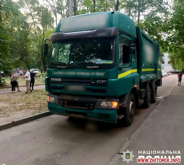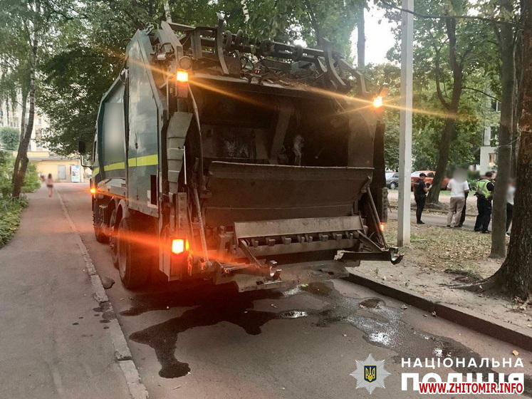 «Подія сталася 30 серпня на вулиці Вітрука у місті Житомирі. Попередньо, близько 19:15 керманич сміттєвоза «Daf», 29-річний житель Романівської громади, рухаючись заднім ходом під’їзною дорогою, допустив наїзд на жінку. На жаль, від травм, отриманих унаслідок ДТП, 92-річна місцева жителька загинула на місці події. Нині всі обставини ДТП встановлюють слідчі Житомирського районного управління поліції у межах кримінального провадження, відкритого за ч. 2 ст. 286 (Порушення правил безпеки дорожнього руху або експлуатації транспорту особами, які керують транспортними засобами) КК України», - йдеться у повідомленні.