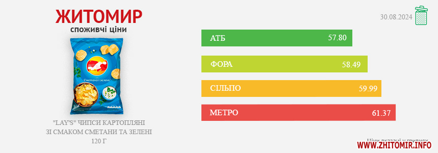 Моніторинг здійснено на основі інформації, отриманої за методом контрольної закупки 30.08.2024 р. у місцях продажу: АТБ, пр. Миру, 15 А, Фора, вул. Лятошинського, 2, Метро, вул. Ватутіна, 55-в, Сільпо, вул. Житній ринок, 1
