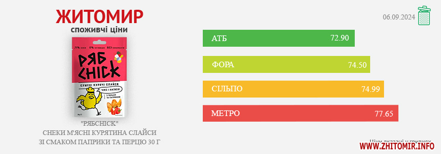 Моніторинг здійснено на основі інформації, отриманої за методом контрольної закупки 06.09.2024 р. у місцях продажу: АТБ, пр. Миру, 15 А, Фора, вул. Лятошинського, 2, Метро, вул. Ватутіна, 55-в, Сільпо, вул. Житній ринок, 1