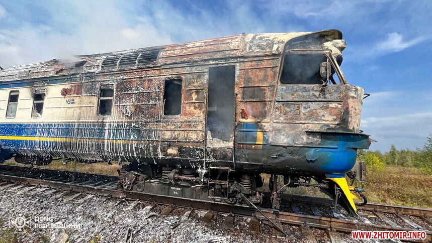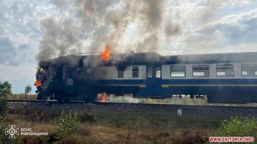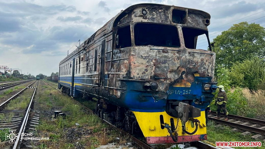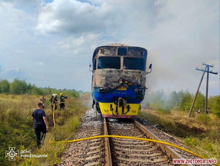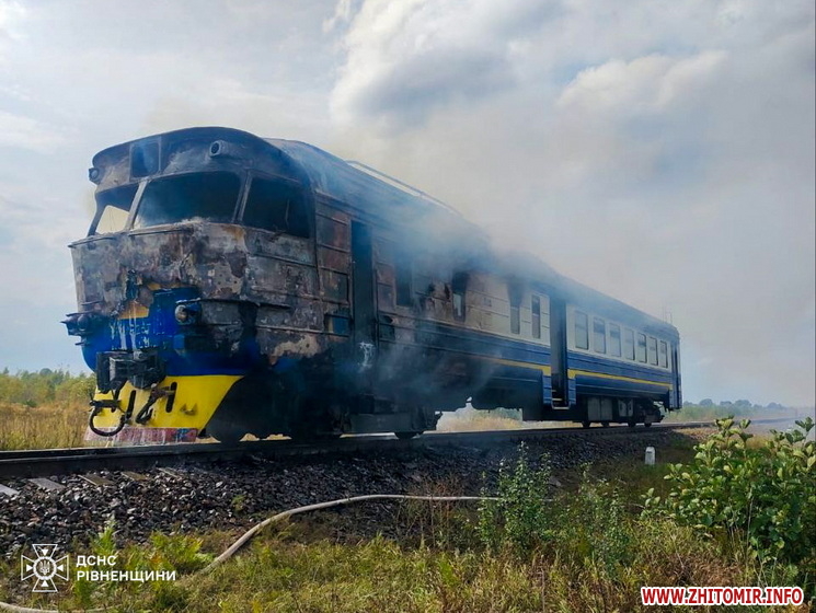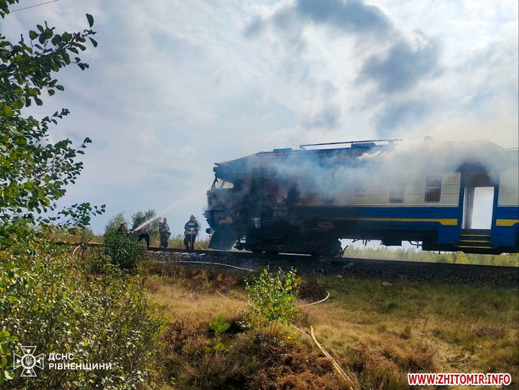 «Сьогодні о 12:38 до Служби порятунку Рівненщини надійшло повідомлення про пожежу у потязі сполученням «Коростень-Олевськ-Сарни» поблизу села Рокитне Сарненського району. На місце виклику негайно було направлено два чергових відділення рятувальників селища Рокитне. До приїзду вогнеборців працівники залізниці відчепили вагон та відігнали основний рухомий склад на безпечну відстань, вагон без пасажирів. Прибувши на місце події рятувальники одразу подали вогнегасні речовини на гасіння пожежі. В результаті пожежі вогнем пошкоджено моторну частину потяга», - йдеться у повідомленні.