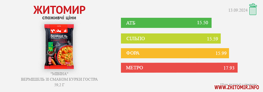 Моніторинг здійснено на основі інформації, отриманої за методом контрольної закупки 13.09.2024 р. у місцях продажу: АТБ, пр. Миру, 15 А, Фора, вул. Лятошинського, 2, Метро, вул. Ватутіна, 55-в, Сільпо, вул. Житній ринок, 1