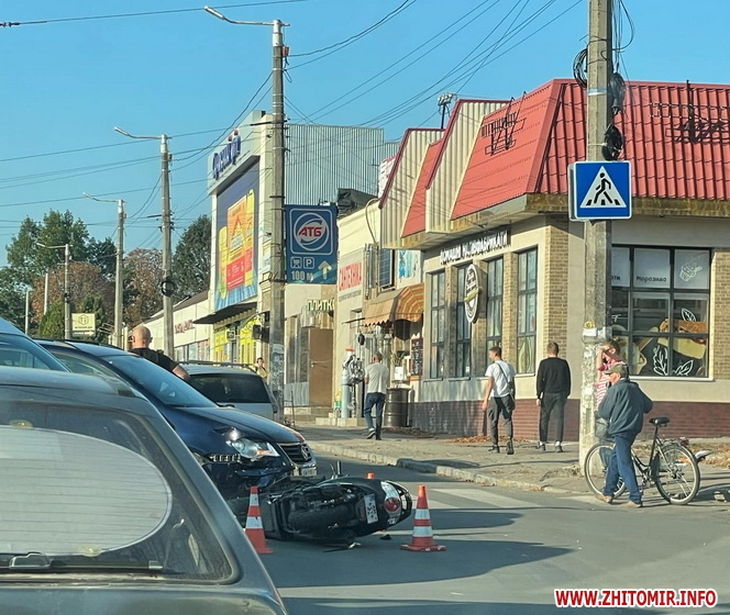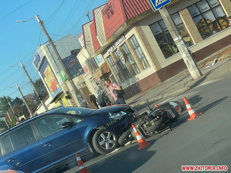 У Житомирі 20 вересня близько 17:00 сталася дорожньо-транспортна пригода за участю легкового автомобіля і мотоцикла.
