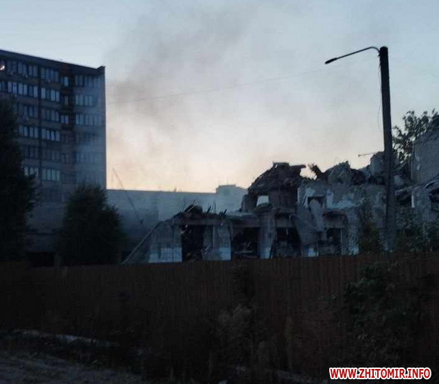 У зруйнованій будівлі ліцею №25 на вулиці Малій Бердичівській у Житомирі пожежа.
