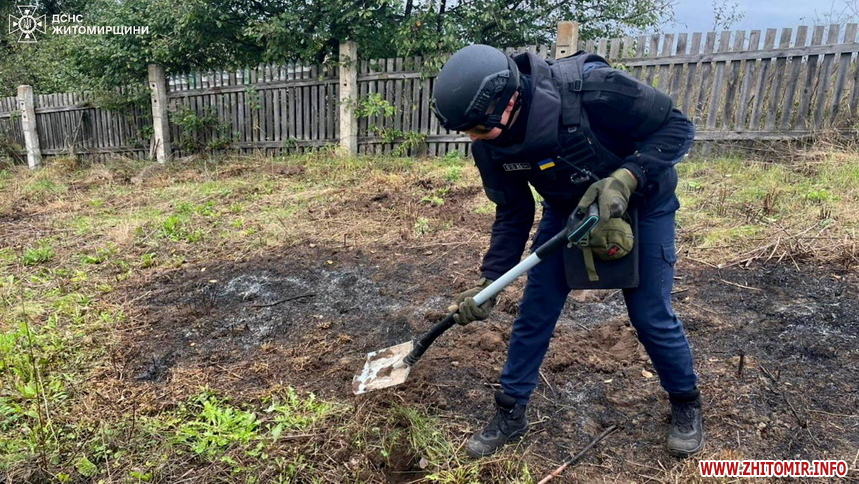 «14 жовтня піротехніки ДСНС області знищили три боєприпаси, що були виявлені у Житомирському районі. У першому випадку вибухонебезпечний предмет, що знаходився на полі, помітили місцеві аграрії. Про це вони відразу ж повідомили до Служби порятунку «101». Ще два такі предмети виявили селяни на приватній присадибній ділянці. Фахівці ДСНС ідентифікували знахідки як артилерійські снаряди. Небезпечні знахідки знищені шляхом підриву у спеціально відведеному місці», - йдеться в повідомленні.