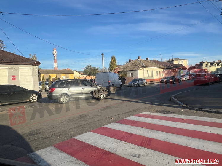 Нагадаємо, увечері 19 жовтня на майдані Короленка у Житомирі сталася ДТП за участі буса Mercedes-Benz Sprinter та легкового автомобіля BMW, одному із водіїв знадобилася допомога медиків.