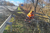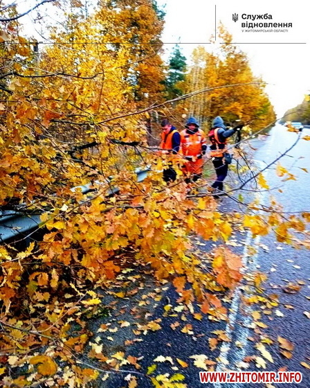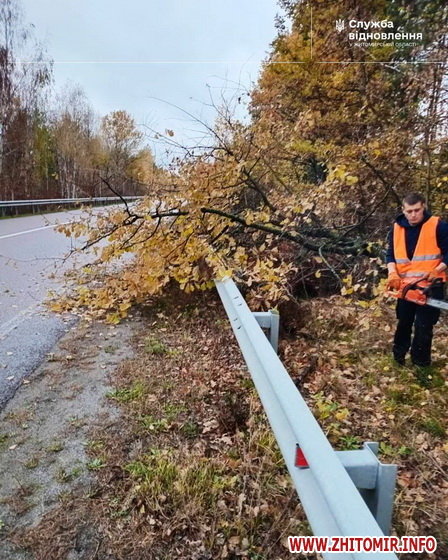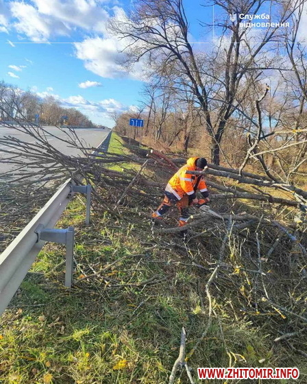 Вже прибрані залишки дерев з проїзної частини доріг М-06 Київ – Чоп, М-21 Виступовичі – Житомир – Могилів-Подільський та Т-06-05 КПП «Майдан Копищенський» - Олевськ – Ємільчине, зараз роботи з розкрижування дерева тривають на дорозі Р-49 Васьковичі – Шепетівка.