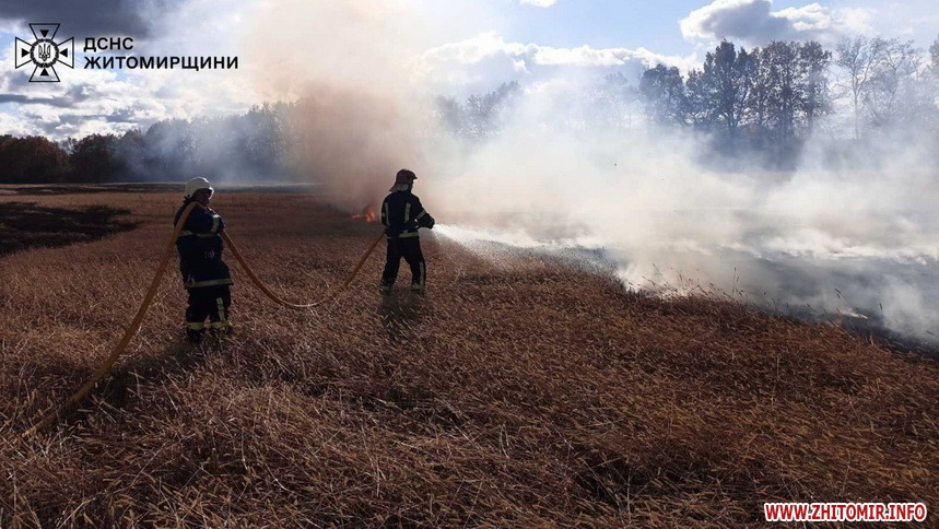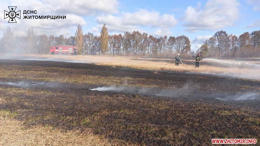 «4 листопада о 10:13 до Служби порятунку «101» надійшло повідомлення про загоряння сухої рослинності в м. Андрушівка Бердичівського району. На місці події бійцями ДСНС було встановлено, що горить суха трава на відкритій території. За пів години бійцям ДСНС загоряння вдалося повністю ліквідувати. Вогнем пройдено приблизно 0,5 га території», - йдеться в повідомленні.