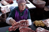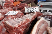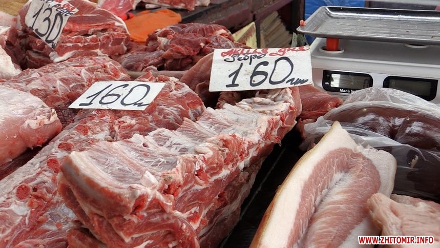 А от ціни на м'ясо не зросли, запевняє продавчиня Інна. Вартість ребер в середньому 150 - 160 гривень за кілограм.