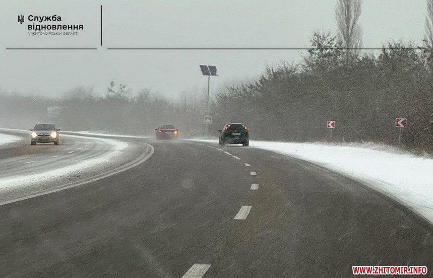 «Запобігаємо утворенню зимової слизькості - 16 одиниць дорожньої техніки обробляє дороги держзначення Житомирщини реагентами. По області хурделиця та прогнозоване нічне зниження температури повітря до -4 за Цельсієм. Зважаючи на такі погодні умови проводимо розподілення піщано-сольової суміші, аби мокрий сніг не перетворився на лід та не став на заваді безпечному руху транспорту. Під час роботи, у зв’язку з воєнним станом та ощадливим використанням державних коштів, надаємо перевагу дорогам міжнародного, національного та регіонального значення», - йдеться в повідомленні.
