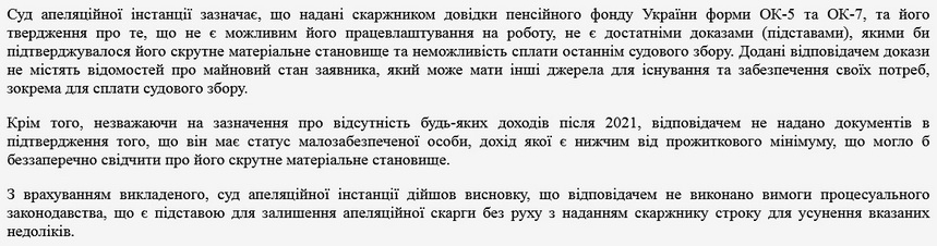 Підставою залишення апеляційної скарги без руху стала несплата Ющенком судового збору в розмірі 201 тис. 243, 60 грн «скрутне матеріальне становище».