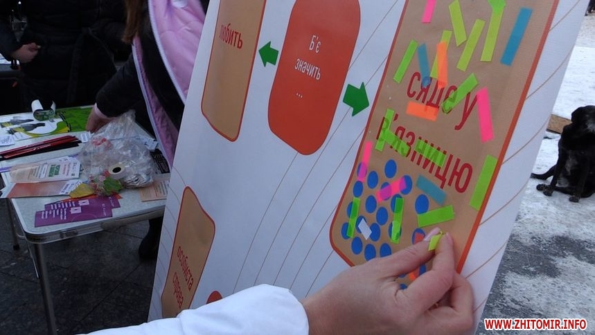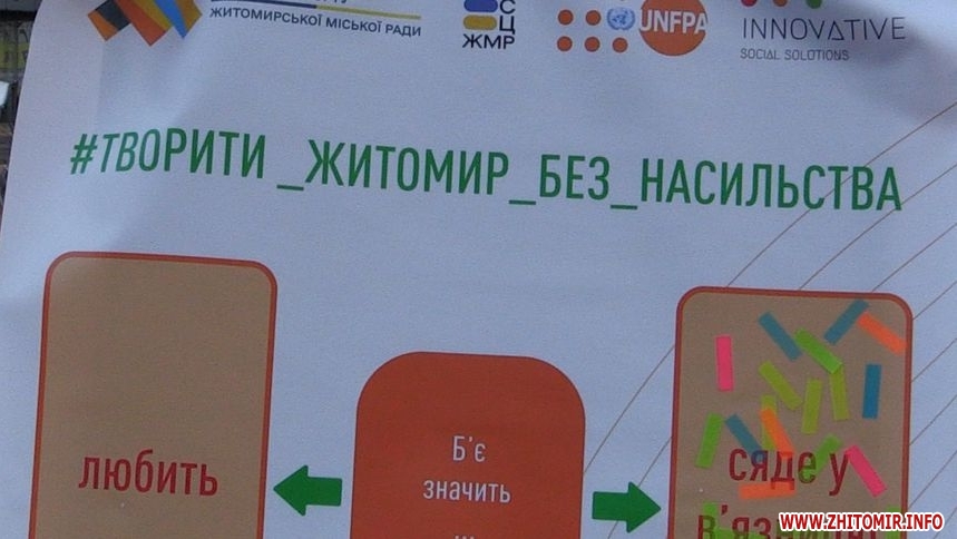Сьогодні на Михайлівській відбулася вулична акція під назвою «ТвориТИ Житомир без насильства», щоб привернути увагу містян до цієї теми.