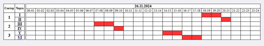 Нагадаємо, у понеділок, 25 листопада, в Україні обмеження споживання електроенергії застосовувалися з 14:00 до 22:00, діятиме одна черга відключень.
