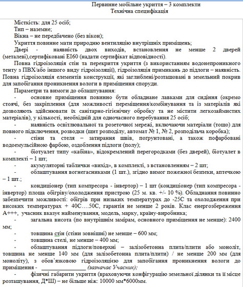 Відділ освіти Оліївської сільської ради Житомирського району оголосив тендер на придбання трьох комплектів модульних укриттів.