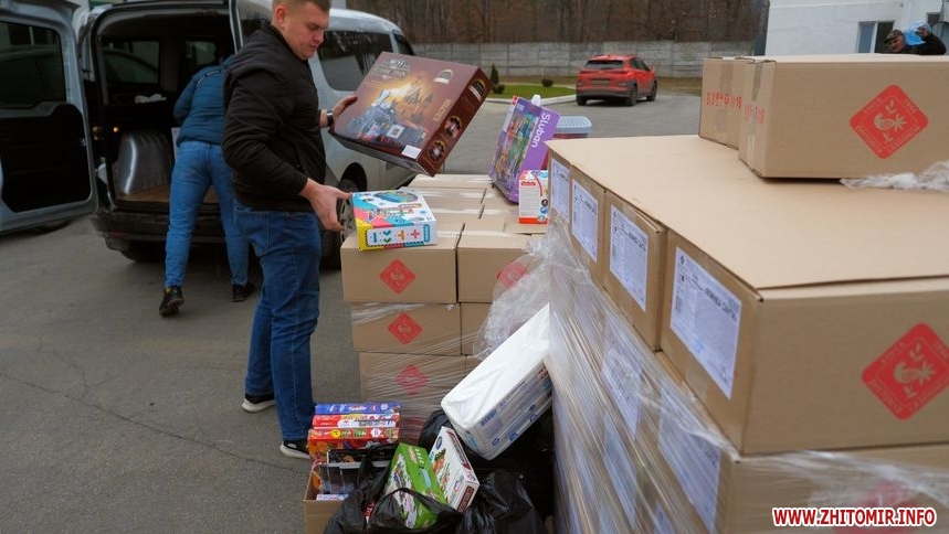 Загалом подарунки від Миколая отримають 6 спеціалізованих закладів області та дитсадочок у Житомирі. Сьогодні з пакунками для дітей та людей похилого віку поїдуть три машини.