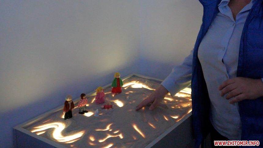 «Все, що ви тут бачите, наповнення цього кабінету направлене на ваші потреби: релаксація, корекція, діагностика. Малюнок, метафоричні асоціативні зображення, бульбашкова колона, пісочна терапія. Усі ці методи, як пазли, які по-своєму допомагають людині отримати ту психологічну допомогу, якої вона найбільше потребує зараз», – розповідає провідна психологиня Житомирського міського центру соціальних служб Житомирської міської ради Вікторія Амелічкіна.