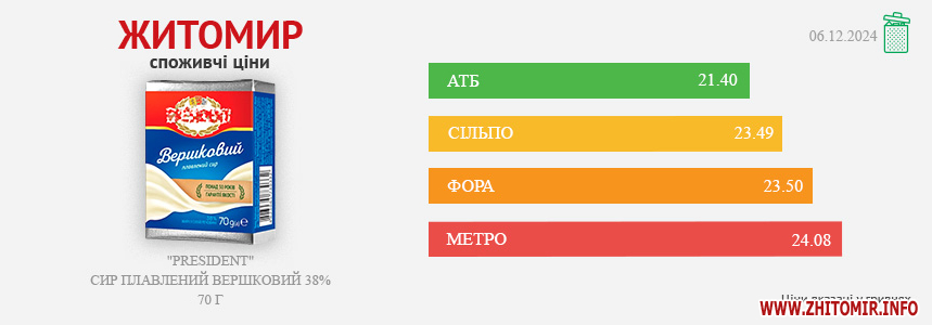 Моніторинг здійснено на основі інформації, отриманої за методом контрольної закупки 06.12.2024 р. у місцях продажу: АТБ, пр. Миру, 15 А, Фора, вул. Лятошинського, 2, Метро, вул. Ватутіна, 55-в, Сільпо, вул. Житній ринок, 1