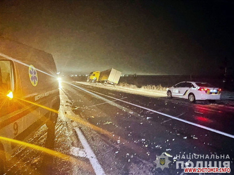 Поліція встановлює обставини ДТП з травмуванням двох людей у Бердичівському районі. Дорожньо-транспортна пригода сталася вночі 10 грудня на 216 км автодороги Виступовичі – Житомир – Могилів-Подільський.
