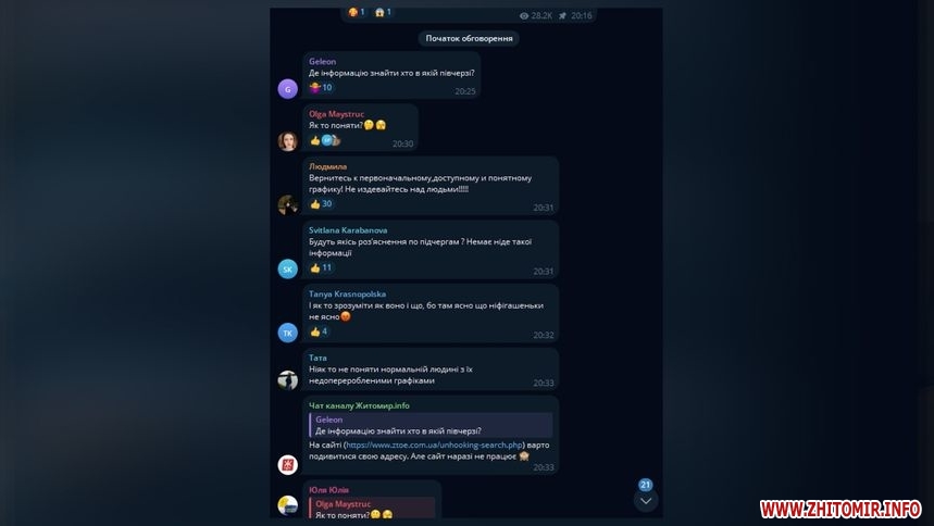 З 16 грудня АТ «Житомиробленерго» почало публікувати оновлені графіки відключень, зокрема, замість вже звичних черг з’явилися підчерги. Таке нововведення люди сприйняли негативно, адже розібратися, коли саме за їх адресою очікувати вимкнення світла стало складніше.