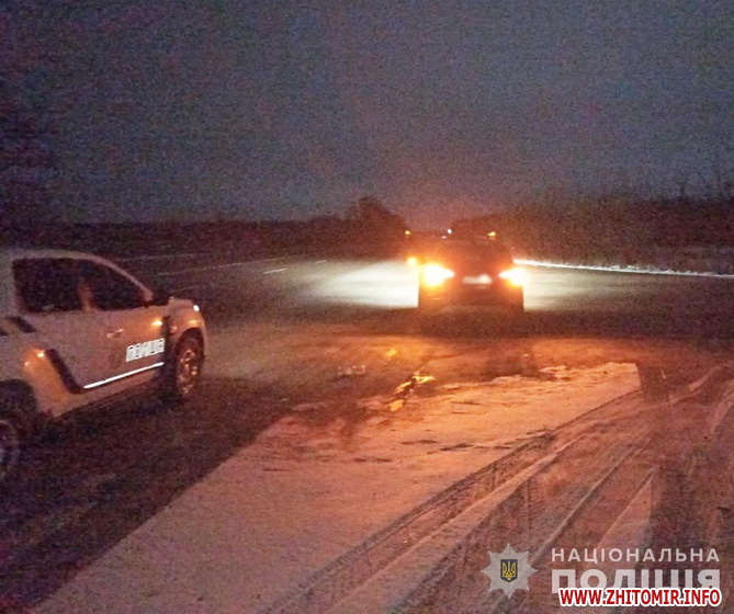 А 14 січня близько 00:45 дорожньо-транспортна пригода сталася поблизу села Оліївки. Попередньо, 37-річний житомирянин, керуючи автомобілем «Hyundai», здійснив наїзд на чоловіка, який йшов по автошляху в попутному напрямку.