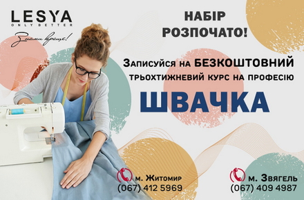 При успішно пройденому курсі – працевлаштування на фабриці LESYA, де ви будете отримувати гідну оплату праці та соціальний пакет, харчування за пільговими цінами, доставка до роботи за рахунок підприємства, медичне обслуговування тощо.