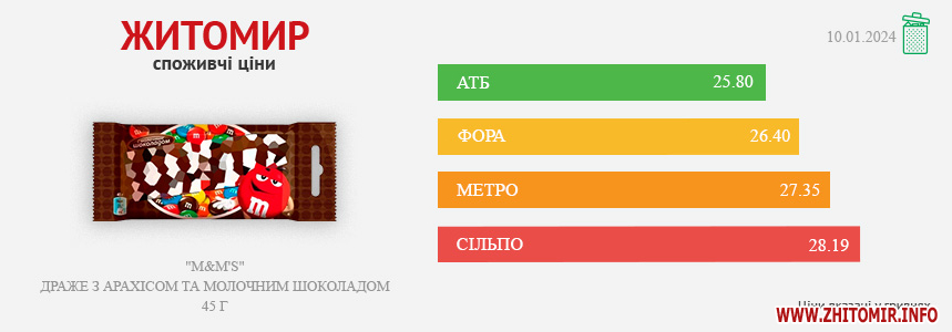 Моніторинг здійснено на основі інформації, отриманої за методом контрольної закупки 28.11.2025 р. у місцях продажу: АТБ, пр. Миру, 15а, Фора, вул. Київська, 106, Метро, вул. Ватутіна, 55в, Сільпо, вул. Житній ринок, 1