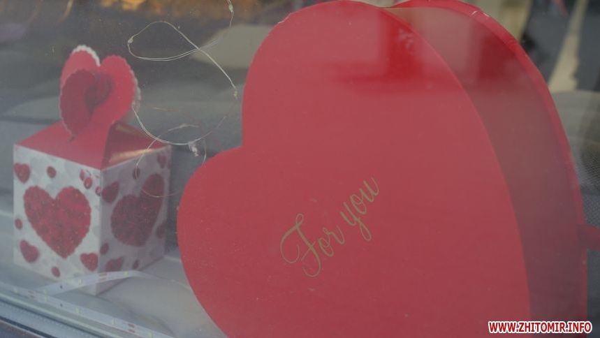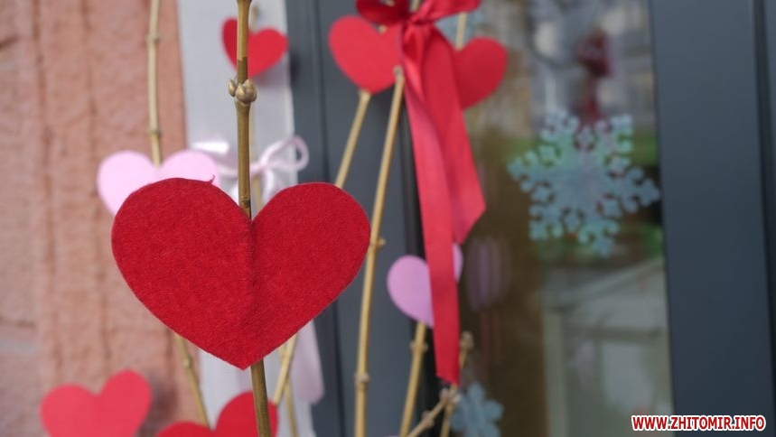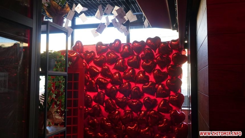 У п’ятницю, 14 лютого, у світі відзначатимуть День Святого Валентина. До свята закоханих житомирські заклади прикрасили сердечками, кульками, тематичними декораціями та написами про кохання.