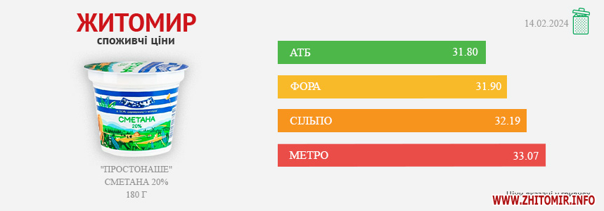 Моніторинг здійснено на основі інформації, отриманої за методом контрольної закупки 14.02.2025 р. у місцях продажу: АТБ, пр. Миру, 15 А, Фора, вул. Лятошинського, 2, Метро, вул. Ватутіна, 55-в, Сільпо, вул. Житній ринок, 1
