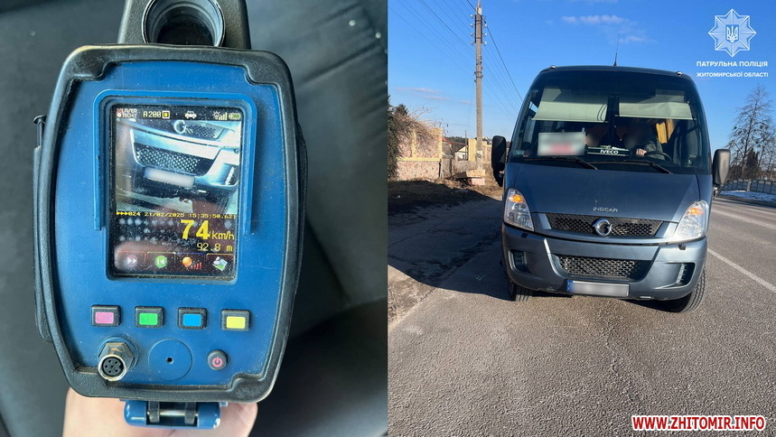 «Учора вдень, на автодорозі Н-03 Житомир — Чернівці, ми зафіксували перевищення дозволеної швидкості руху водієм маршрутного транспортного засобу Iveco Daily. Він рухався зі швидкістю 74 км/год, при дозволеній — 50 км/год», - йдеться в повідомленні.