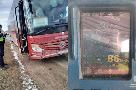 Також днями, під час здійснення контролю швидкісного режиму за допомогою приладу TruCam на автодорозі М-06 Київ — Чоп, ми зафіксували автобус, водій якого перевищив встановлений швидкісний режим. Водій маршрутного транспорту рухався зі швидкістю 86 км/год, при дозволеній — 50 км/год.