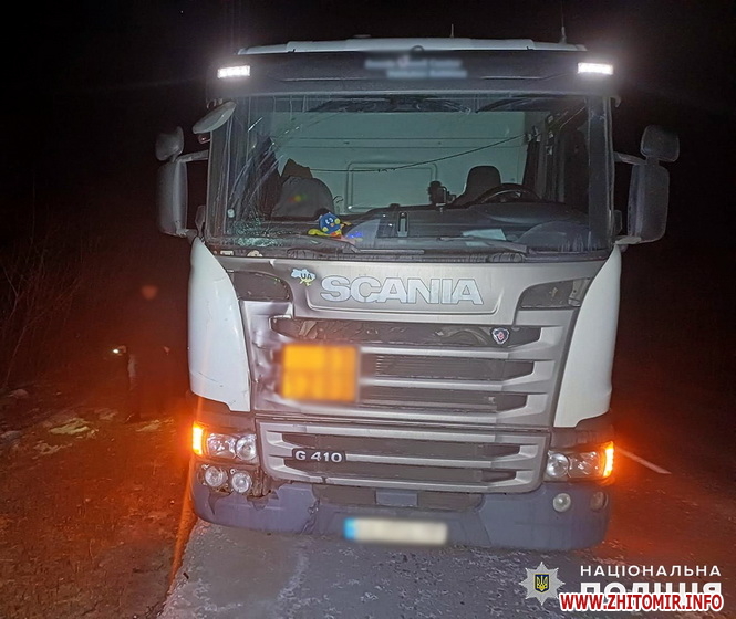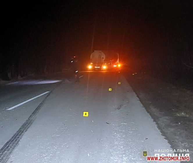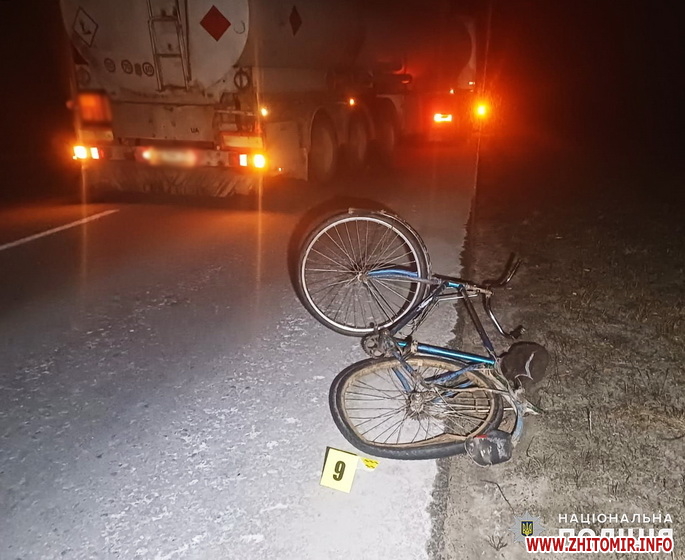 «Дорожньо-транспортна пригода сталася 24 лютого близько 19:15 на автодорозі Виступовичі – Житомир – Могилів-Подільський, неподалік с. Потаповичів Овруцької громади. Попередньо, 50-річний киянин, водій автомобіля «Scania», рухаючись зі сторони м. Коростеня в напрямку м. Овруча, здійснив наїзд на чоловіка, який йшов з велосипедом у руках у попутному напрямку», - йдеться в повідомленні.