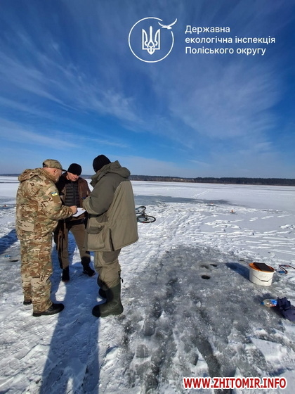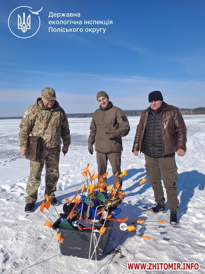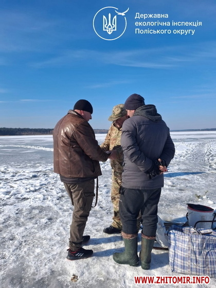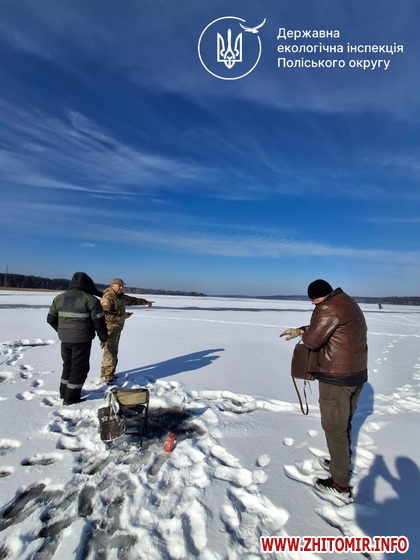 «22 лютого 2025 року державними інспекторами з охорони навколишнього природного середовища на підставі наказу ДЕІ Поліського округу проведено захід державного нагляду (контролю) щодо охорони водних біоресурсів на території Малинського водосховища, яке розташоване на річці Ірша, неподалік Малина. По прибутті на місце відповідно до наказу Житомирського рибоохоронного патруля встановлено межі зимувальних ям та під час проведення обстеження виявлено три факти порушення правил рибальства. Так, місцеві жителі-рибалки перебували на території зимувальних ям з зимовими вудками та намагалися піймати рибу, чим порушили п. 4 Правил любительського рибальства «Заборонені знаряддя лову і способи добування (вилову) водних біоресурсів під час здійснення любительського рибальства та інші заборони», - йдеться в повідомленні.