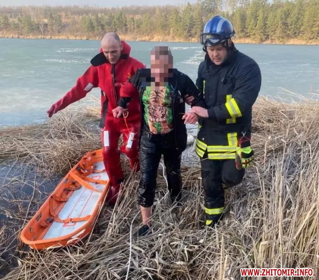 «Повідомлення про подію надійшло за екстреним номером «101» сьогодні о 16:25. Зʼясувалося, що у с. Слобода-Селець Житомирського району на карʼєрі під лід провалився чоловік. Рятувальники підібралися якнайближче до чоловіка, кинули мотузку та витягнули його. Постраждалого госпіталізовано», - йдеться в повідомленні.