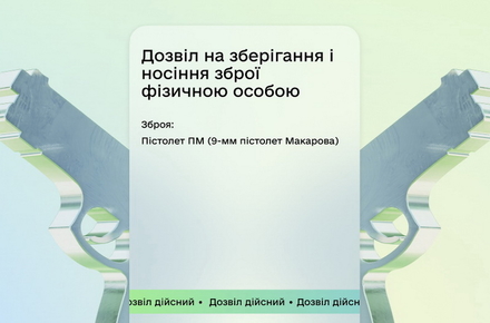 Спочатку він працюватиме у форматі бета-тестування, а ми постійно аналізуватимемо ваш фідбек. Тож додавайте свої дозволи, відстежуйте їх статус (чинний, недійсний, анульований), отримуйте повну інформацію про зареєстровану зброю, її характеристики та замовляйте витяги в застосунку Дія.