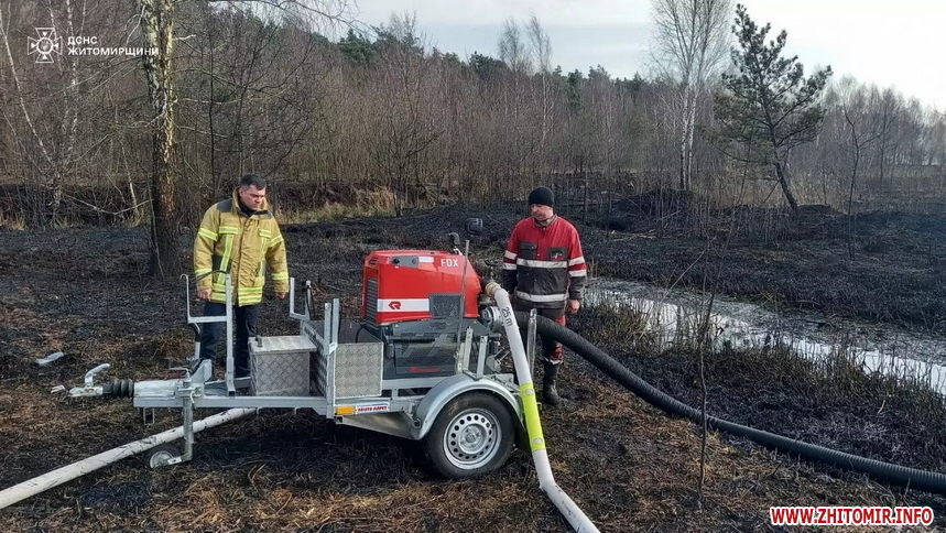 «Зокрема, на території Коростенського району організовано гасіння торф'яних пожеж на землях запасу поблизу селища Бучмани, села Рудня Озерянська та села Озеряни, на загальній площі близько 6.8 га. Залучено 37 чол. о/с та 9 од. техніки, 8 мотопомп різної потужності. Завдяки залученим оперативним силам та засобам пожежі локалізовано», - йдеться в повідомленні.