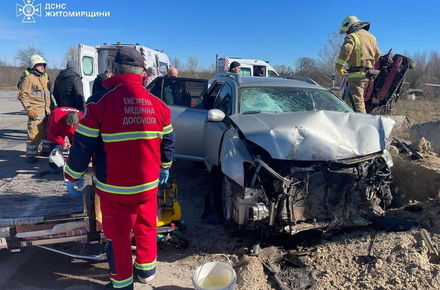 «Сьогодні вранці романівські рятувальники залучались до ліквідації наслідків дорожньо-транспортної пригоди за участі двох легковиків, яка сталася у с. Залужне Житомирського району. В результаті надзвичайної події постраждало 4 осіб. На місці події бійці ДСНС від’єднали акумулятори у пошкоджених авто та допомогли транспортувати потерпілих до карет швидкої допомоги, яких потім госпіталізували до медичного закладу», - йдеться в повідомленні.