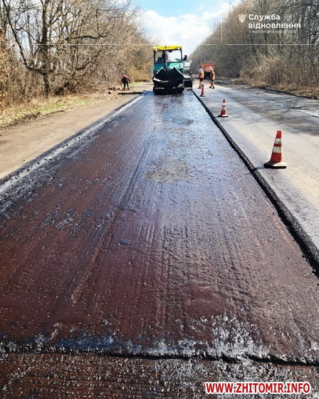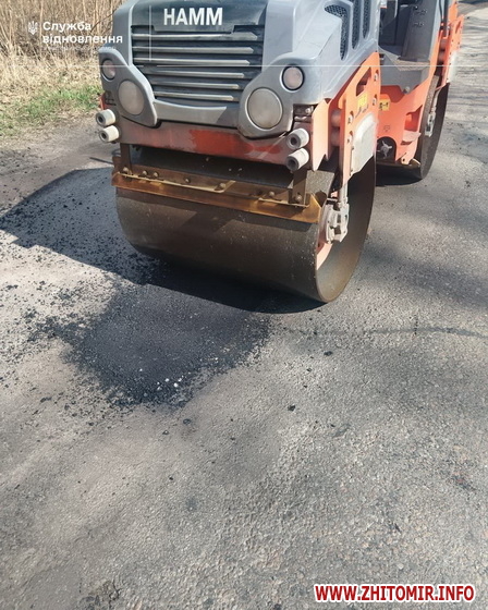 «Тут ремонт пошкоджень дорожнього покриття проводиться із використанням асфальтоукладальника, катка та автогудронатора, попередньо старе асфальтобетонне покриття знімають холодним фрезуванням. Надалі, за умови сприятливих погодних умов, роботи з ліквідації вибоїн тут триватимуть та розпочнуться на дорогах: Р-18 Житомир- Попільня-Сквира-Володрка-Ставище та Т-06-08 Малин – Кочерів», - інформують у Службі відновлення.
