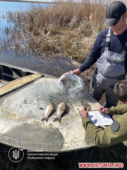 «4 квітня 2025 року спеціалістами Державної екологічної інспекції Поліського округу під час здійснення рейдових заходів державного нагляду (контролю), спрямованих на запобігання та виявлення адміністративних правопорушень, в с. Павалоч Житомирського району на р. Роставиця виявлено громадянина, який здійснив незаконний вилов двох екземплярів риби – карася сріблястого, за допомогою заборонених для любительського і спортивного рибальства знарядь лову – сітки ліскової довжиною 50 м. Зазначений факт зафіксовано протоколом про адміністративне правопорушення, складеним за ч.4 ст. 85 КУпАП», - йдеться в повідомленні.