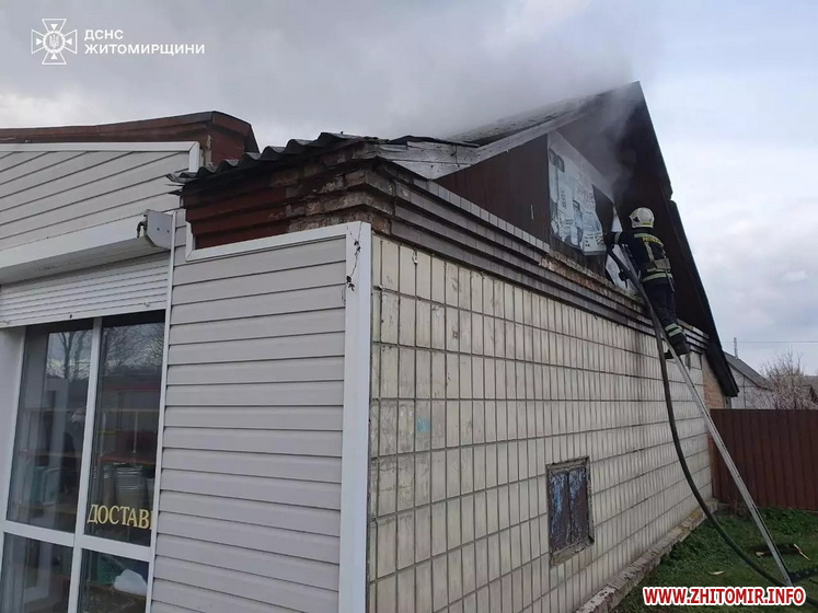 «9 квітня о 15:45 до Служби порятунку «101» надійшло повідомлення про пожежу в будівельному магазині у м. Малині. По прибуттю вогнеборців до місця події з-під даху йшов густий дим. Горіння відбулось в підсобному приміщенні. Завдяки оперативності вогнеборців трохи менше як за пів години загоряння ліквідували, чим не допущено поширення полум'я на торгівельний зал», - йдеться в повідомленні.