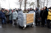З плакатами в руках біля комунального некомерційного підприємства «Житомирська багатопрофільна опорна лікарня» Новогуйвинської селищної ради 10 квітня зібралися понад дві сотні людей. Люди вимагали не закривати неврологічне відділення, яке керівництво медзакладу вирішило об’єднати з терапевтичним.