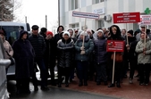 Мітингувальники вимагали, щоб до них вийшов в.о. генерального директора медичного закладу Сергій Демус. Через пів години Сергій Демус таки вийшов до людей.