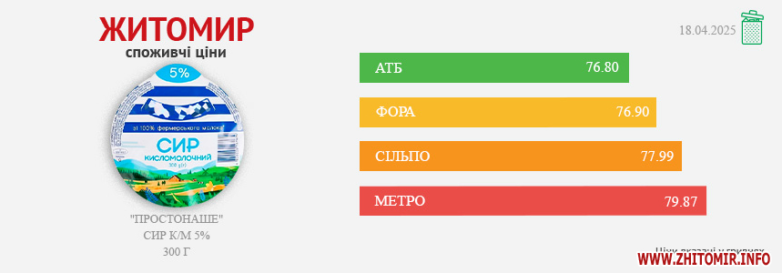 Моніторинг здійснено на основі інформації, отриманої за методом контрольної закупки 18.04.2025 р. у місцях продажу: АТБ, пр. Миру, 15 А, Фора, вул. Київська, 106, Метро, вул. Ватутіна, 55-в, Сільпо, вул. Житній ринок, 1
