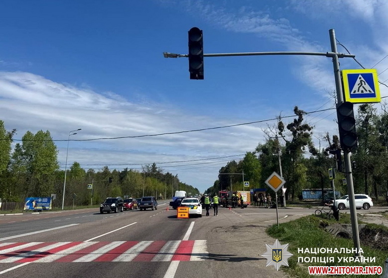 Слідчі Житомирського райуправління поліції №1 з’ясовують обставини події у рамках кримінального провадження, розпочатого за ч. 1 ст. 286 (Порушення правил безпеки дорожнього руху або експлуатації транспорту особами, які керують транспортними засобами) КК України.