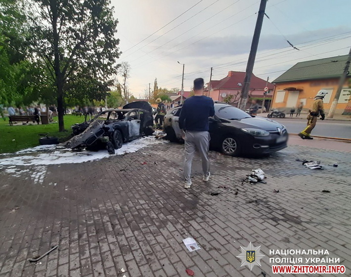 «Дорожньо-транспортна пригода сталася 4 травня близько 19:30 на вулиці Покровській. На місці події працювала слідчо-оперативна група Житомирського районного управління поліції №1 та рятувальники ДСНС. Попередньо, 21-річний житель Тернопільщини, керуючи автомобілем BMW, виїхав за межі проїзної частини, де сталося зіткнення з припаркованими автівками. Внаслідок ДТП відбулося займання BMW, також вогнем було пошкоджено ще чотири транспортних засоби. Водій легковика отримав травми, його було доставлено до медичного закладу», - йдеться у повідомленні.
