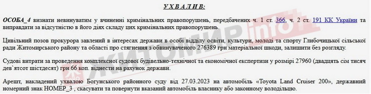 Скриншот з вироку суду