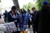 У день фіналу Кубка України з футболу, з шостої години ранку перекрили рух транспорту з вулиці Фещенка-Чопівського до Синельниківської. Біля стадіону продають футбольну атрибутику та їжу.
