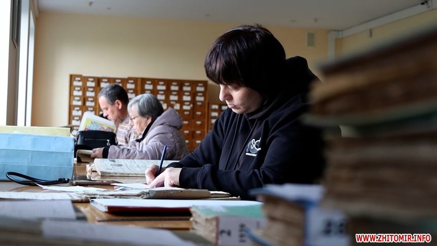 20 травня у читальному залі бачимо людей, які досліджують свій родовід. Серед них житомирянка Стефанія, яка близько трьох місяців шукає імена своїх родичів на сторінках старих документів.