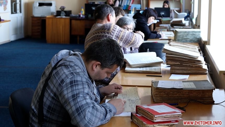 «Перш за все ви починаєте зі свого домашнього архіву. Однаково якісь документи є вдома, можете у дідуся, бабусі, батьків запитати, що вони знають про ваш родовід. Цю інформацію ви систематизуєте і вже далі крокуєте до архіву. Базова інформація, яку ви повинні знати: коли народилася ваша бабуся або дідусь, або прадідусь, прабабуся, роки народження, прізвище, ім’я, по батькові, населені пункти, де вони народилися і мешкали. Для того, щоб працювати з документами, які зберігаються у Державному архіві Житомирської області, громадянин повинен мати при собі паспорт та фотокартку, щоб оформитися до читального залу, заповнити певну заяву, анкету. Тоді вже можна замовляти документи й працювати з ними за попереднім записом один раз на тиждень, на сьогодні у нас така процедура. Щоб записатися до читального залу можна прийти до архіву або записатися за телефоном: 42-51-18. Читальний зал працює з вівторка по четвер з 9:00 до 16:00, в п’ятницю з 9:00 до 15:00 без обідньої перерви», – розповідає заступник начальника відділу використання інформації документів Національного архівного фонду Державного архіву Житомирської області Вікторія Дідківська.