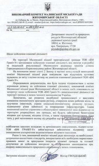 Нагадаємо, 18 квітня Сьомий апеляційний суд анулював спецдозвіл ТОВ «БМ Граніт-У» на видобуток граніту на території «Калюжі» на Малинщині.