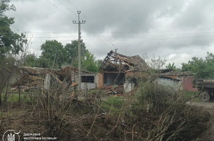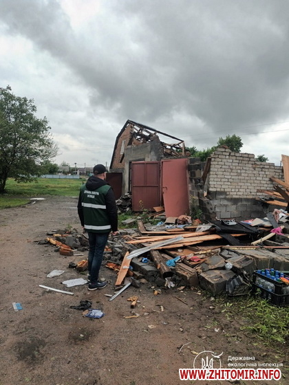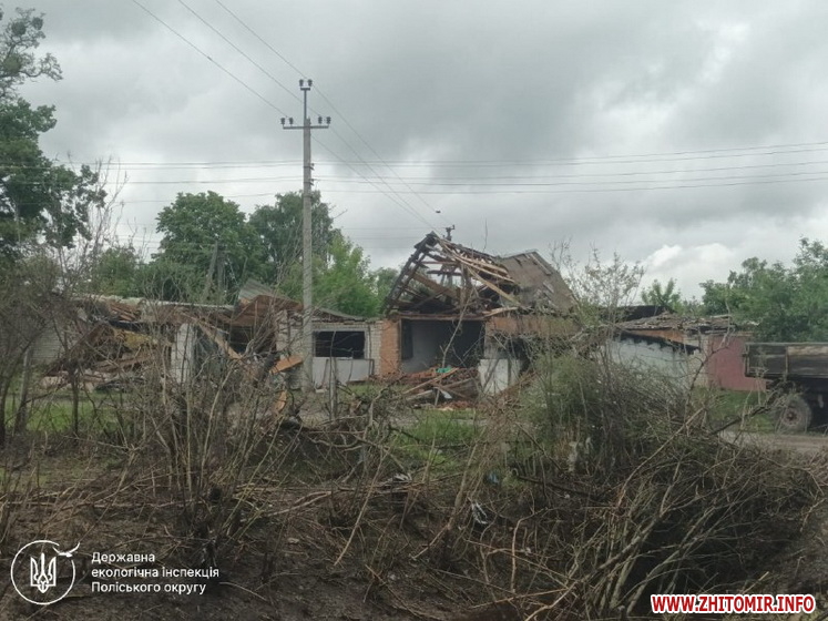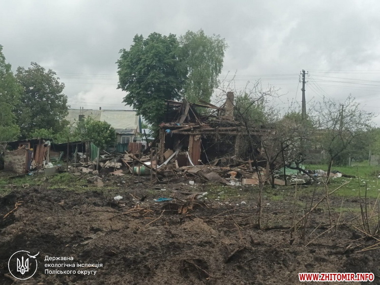 «Державні інспектори з охорони навколишнього природного середовища Поліського округу 27 травня 2025 року виїхали на місце влучання у Андрушівській міській раді, де напередодні, в ніч на 25 травня, внаслідок ракетно-бомбових ударів було зруйновано та пошкоджено приватні будинки, господарські споруди та багатоповерхівки. Після документування правоохоронними органами та завершення огляду місця події, фахівцями Екоінспекції проведено обстеження та обмір площі, яка зазнала засмічення внаслідок утворення відходів руйнації», - йдеться в повідомленні.